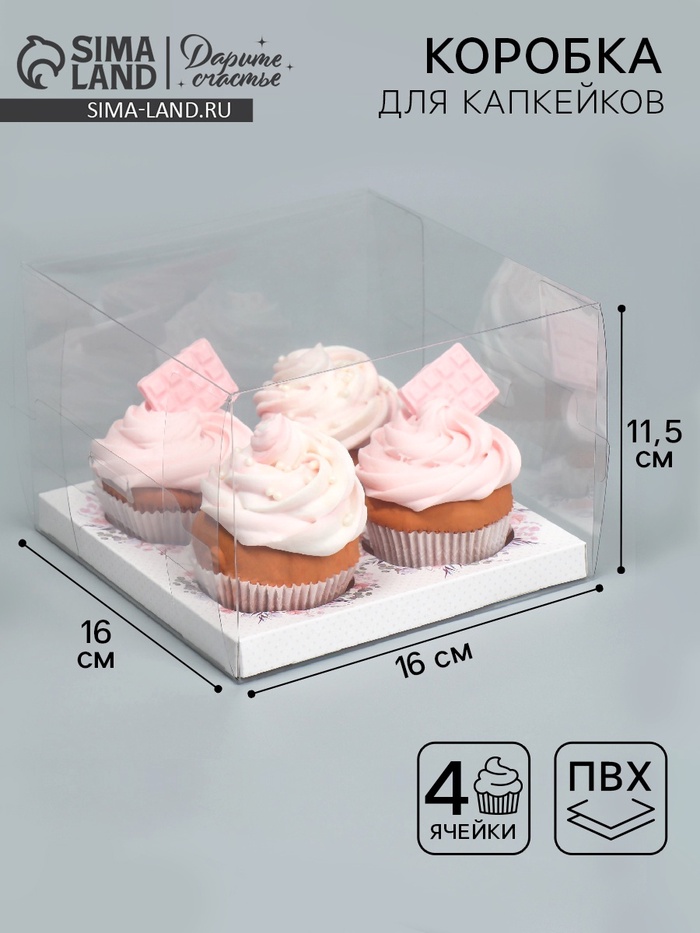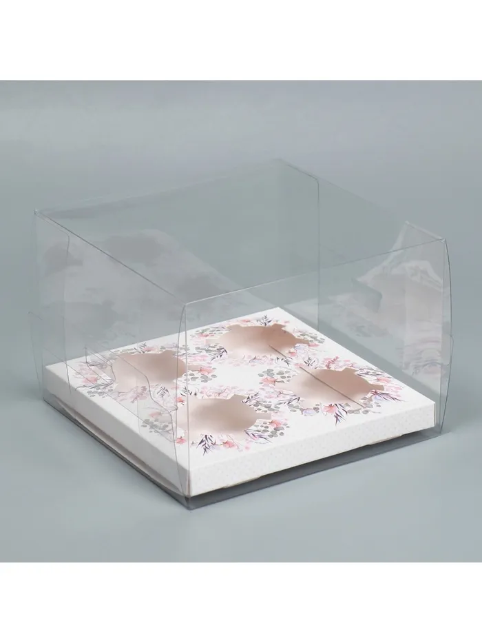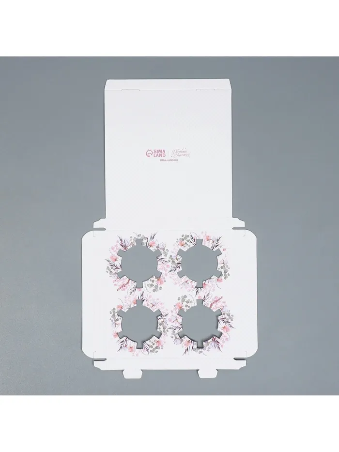 Коробка для капкейка, кондитерская упаковка, 4 ячейки, «Венки», 16 х 16 х 11.5 см — Характеристики