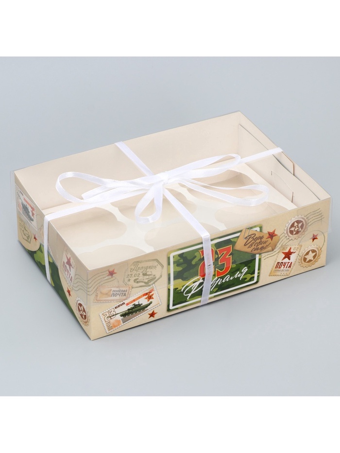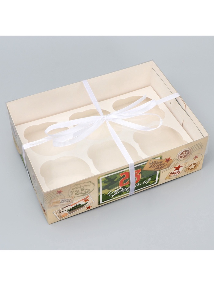 Коробка для капкейка, кондитерская упаковка, 6 ячеек, «23 февраля», 23 х 16 х 7.5 см — Характеристики