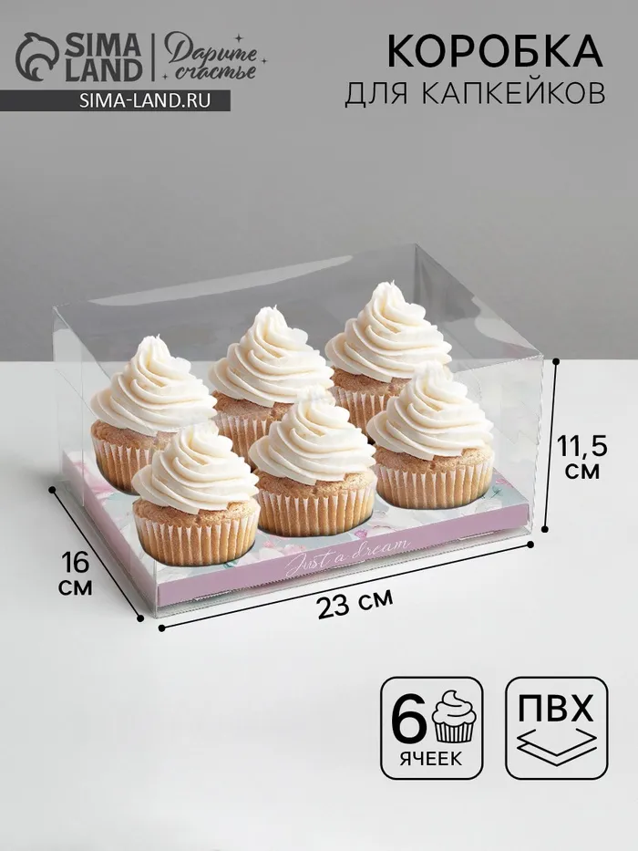 Коробка для капкейка, кондитерская упаковка, 6 ячеек, Just a dream, 16 х 23 х 11.5 см — Характеристики