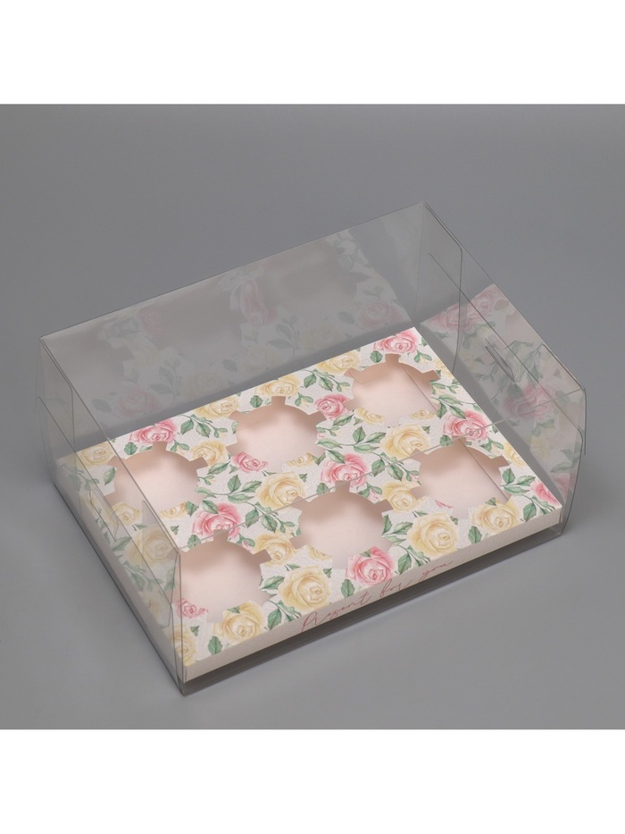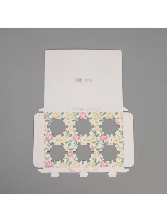 Коробка для капкейка, кондитерская упаковка, 6 ячеек «Розы», 16 х 23 х 11.5 см — Характеристики