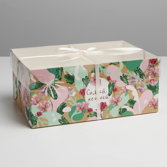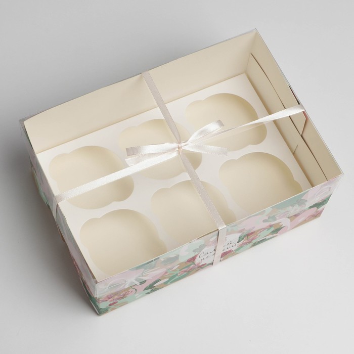 Коробка для капкейка, кондитерская упаковка, 6 ячеек «Самой нежной», 23 х 16 х 10 см — Характеристики