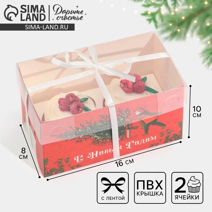 Коробка для капкейка «Новогодняя ретро почта», 16 х 8 х 10 см — Характеристики