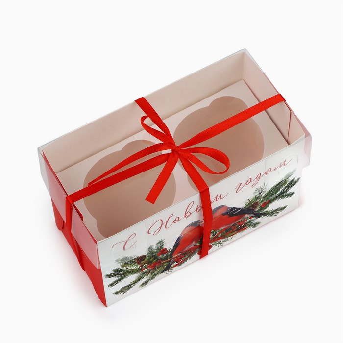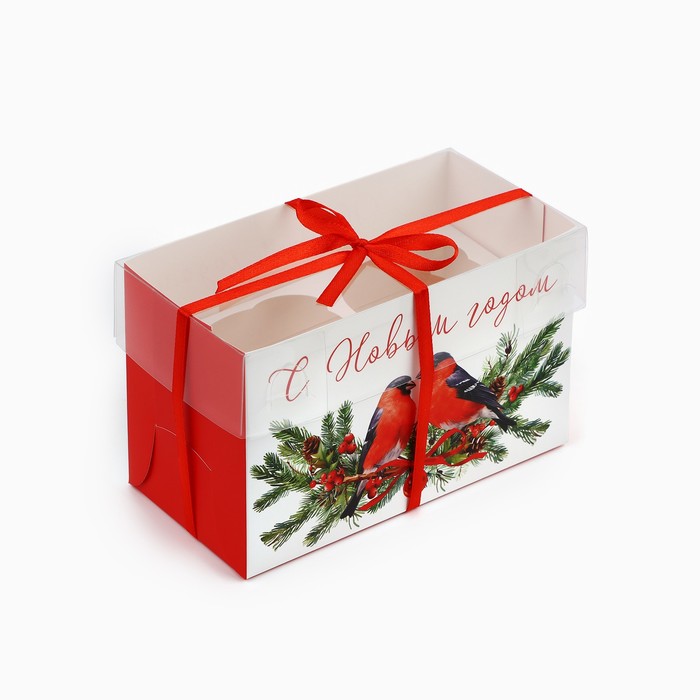 Коробка для капкейка «Снегири», 16 х 8 х 10 см