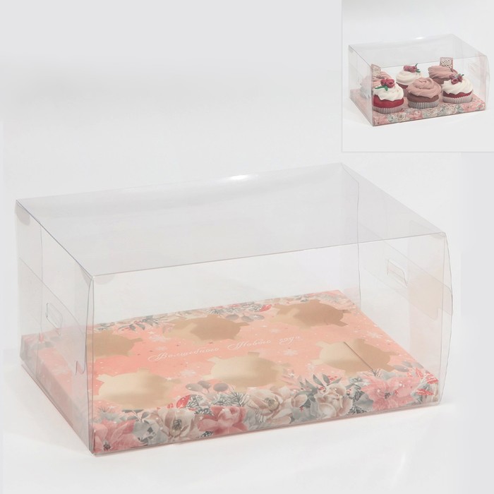 Коробка для капкейка «Зимние цветы», 23 х 16 х 11.5 см