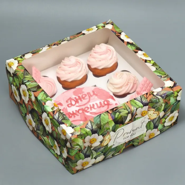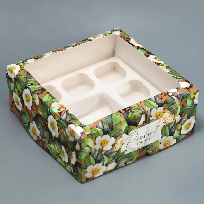 Коробка для капкейков и бенто-торта, кондитерская упаковка «Цветочный паттерн», 25 х 25 х 10 см — Характеристики