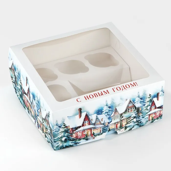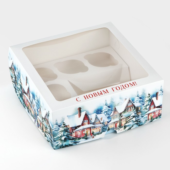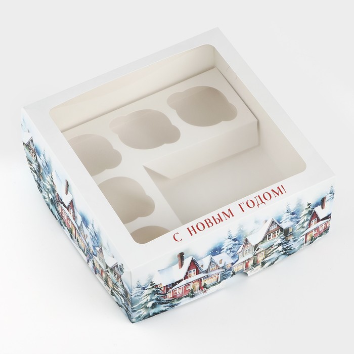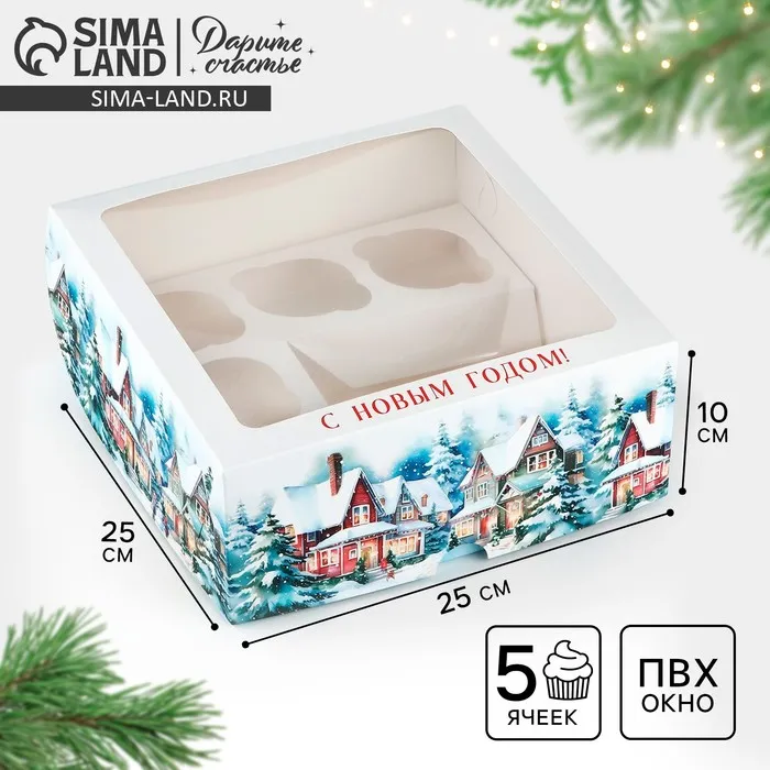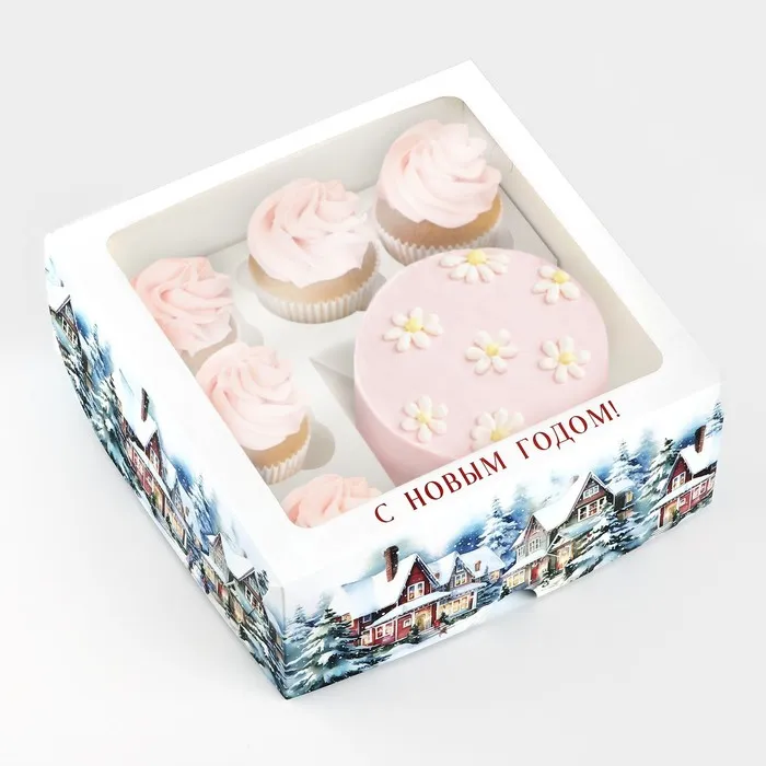 Коробка для капкейков и бенто-торта «С Новым годом!» 25 х 25 х 10 см