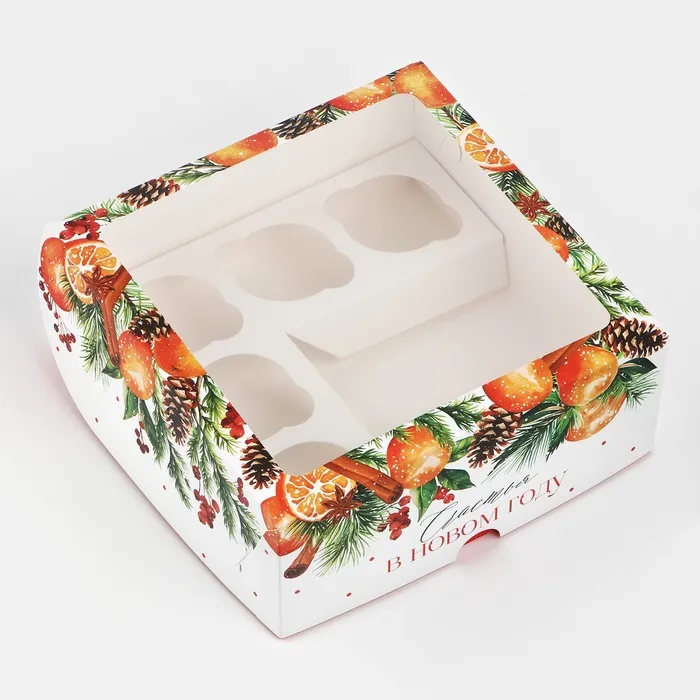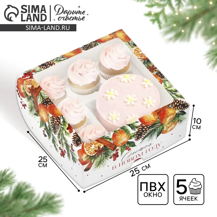 Коробка для капкейков и бенто-торта «Счастья в Новом году», венок 25 х 25 х 10 см — Характеристики