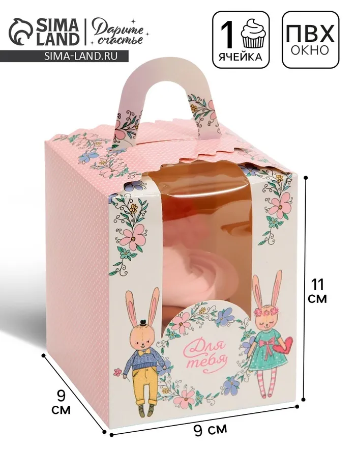 Коробка для капкейков, кондитерская упаковка, 1 ячейка «Для тебя», 9 х 9 х 11 см — Характеристики