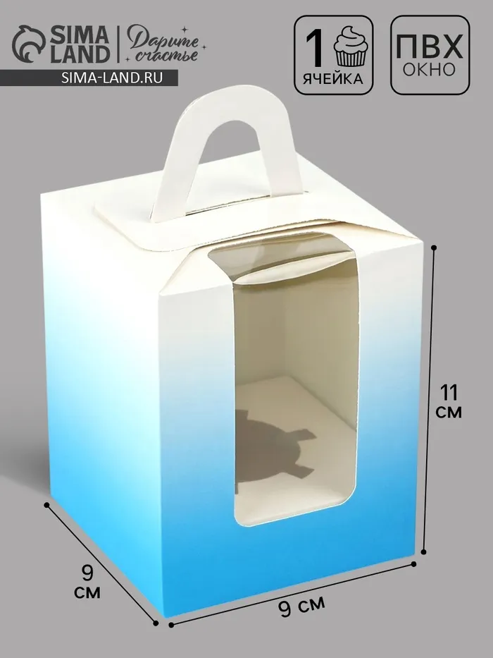 Коробка для капкейков, кондитерская упаковка, 1 ячейка «Голубой градиент», 9 х 9 х 11 см — Характеристики