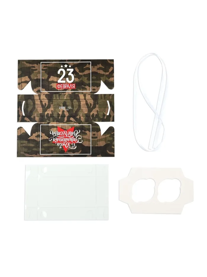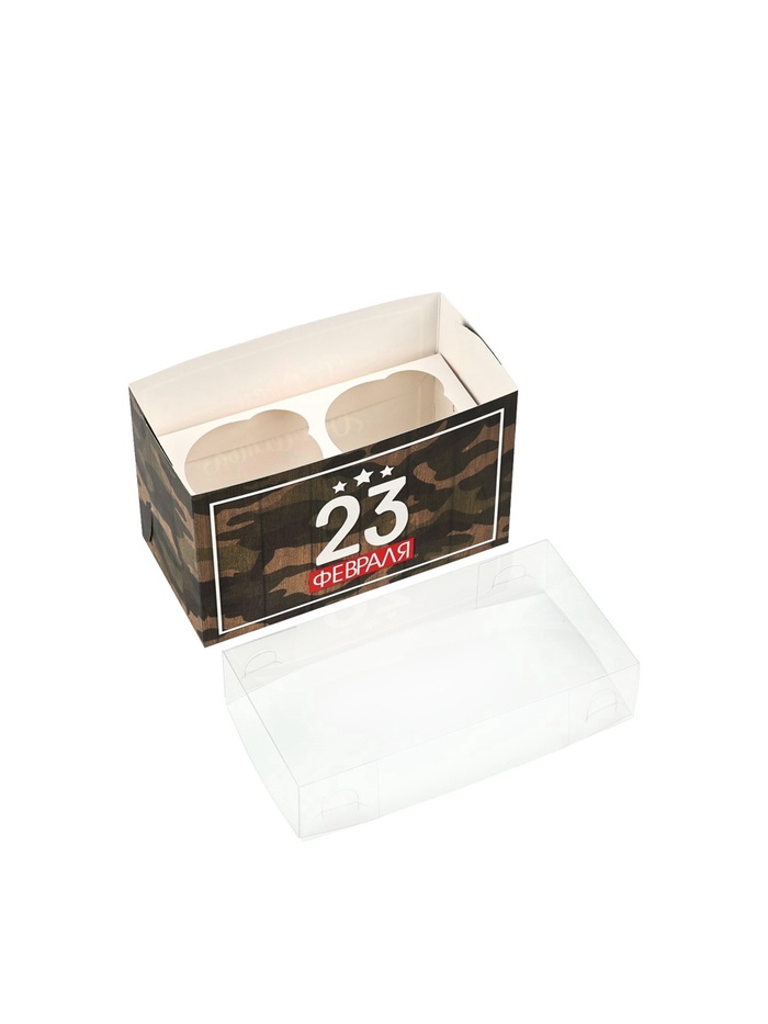 Коробка для капкейков, кондитерская упаковка, 2 ячейки «23 Февраля», 16 х 8 х 10 см — Характеристики