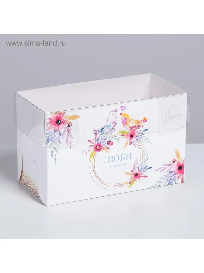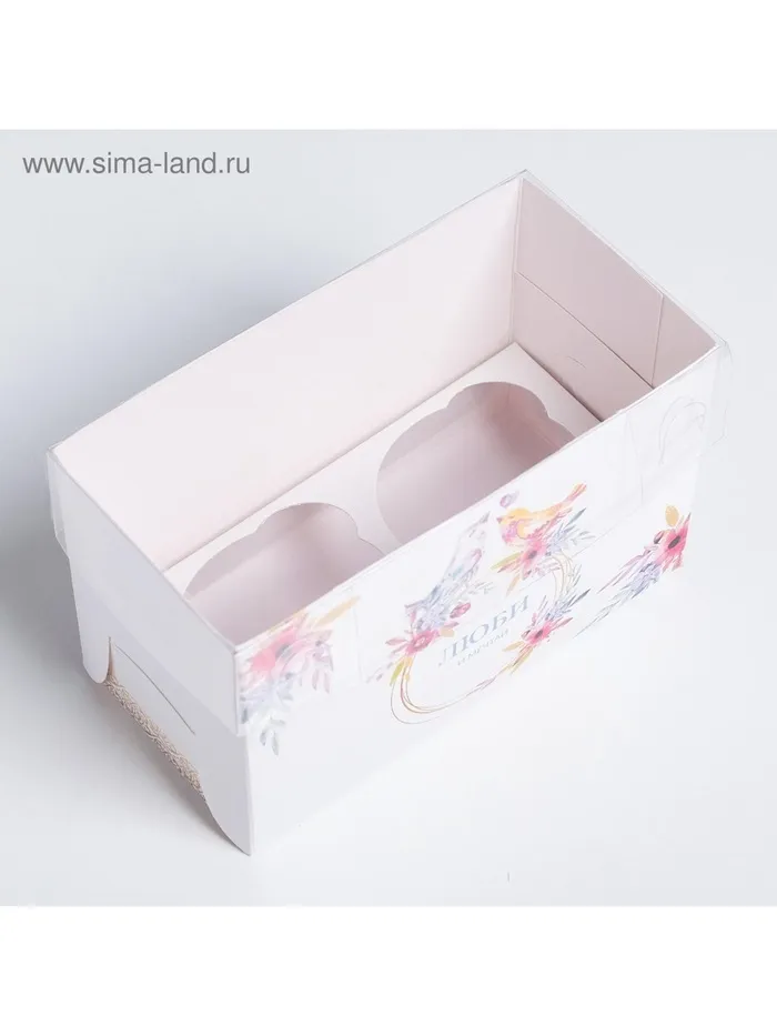 Коробка для капкейков, кондитерская упаковка, 2 ячейки «Люби и мечтай», 16 х 8 х 10 см — Характеристики