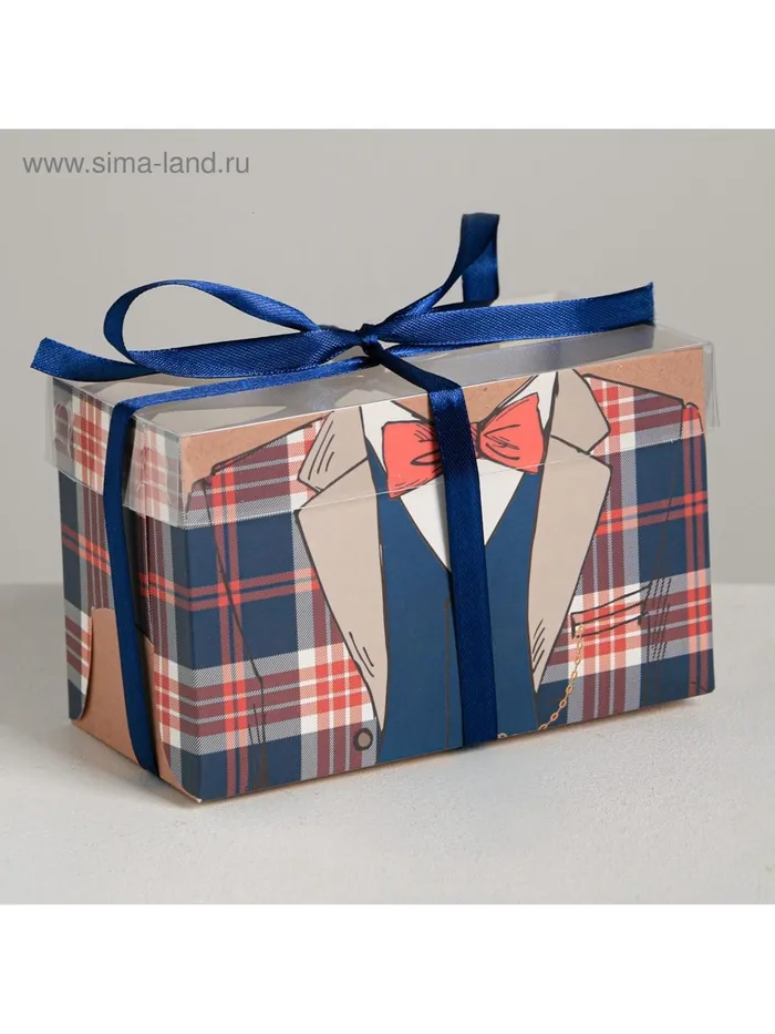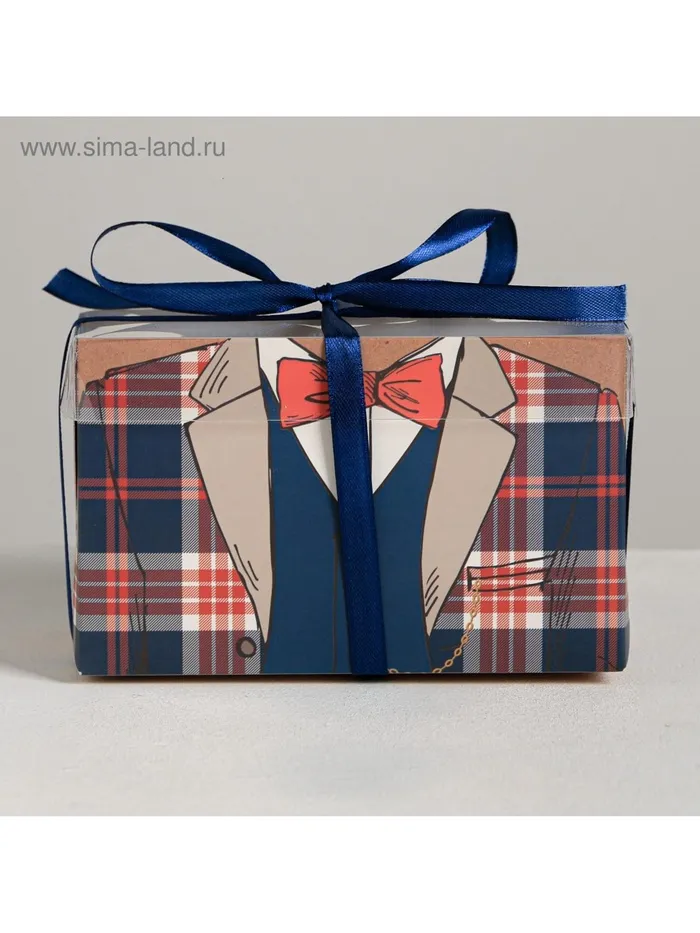 Коробка для капкейков, кондитерская упаковка, 2 ячейки «Настоящему мужчине», 16 х 8 х 10 см — Характеристики
