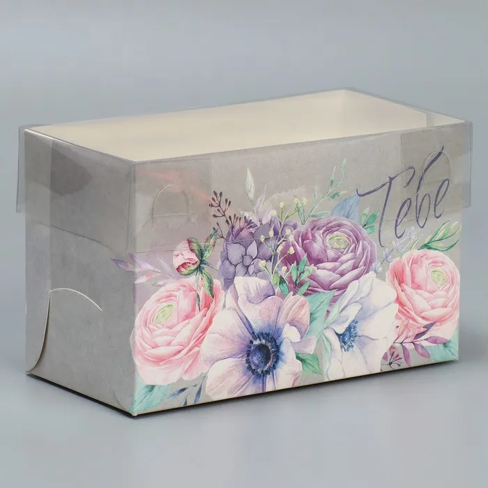 Коробка для капкейков, кондитерская упаковка, 2 ячейки «Самого прекрасного тебе», 16 х 8 х 10 см — Характеристики