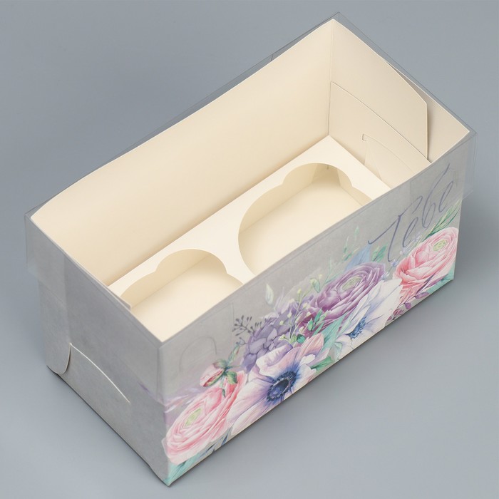 Коробка для капкейков, кондитерская упаковка, 2 ячейки «Самого прекрасного тебе», 16 х 8 х 10 см — Характеристики