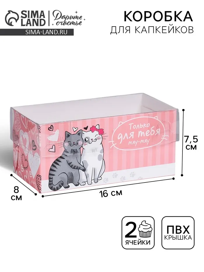 Коробка для капкейков, кондитерская упаковка, 2 ячейки «Только для тебя», 16 х 8 х 7.5 см — Характеристики