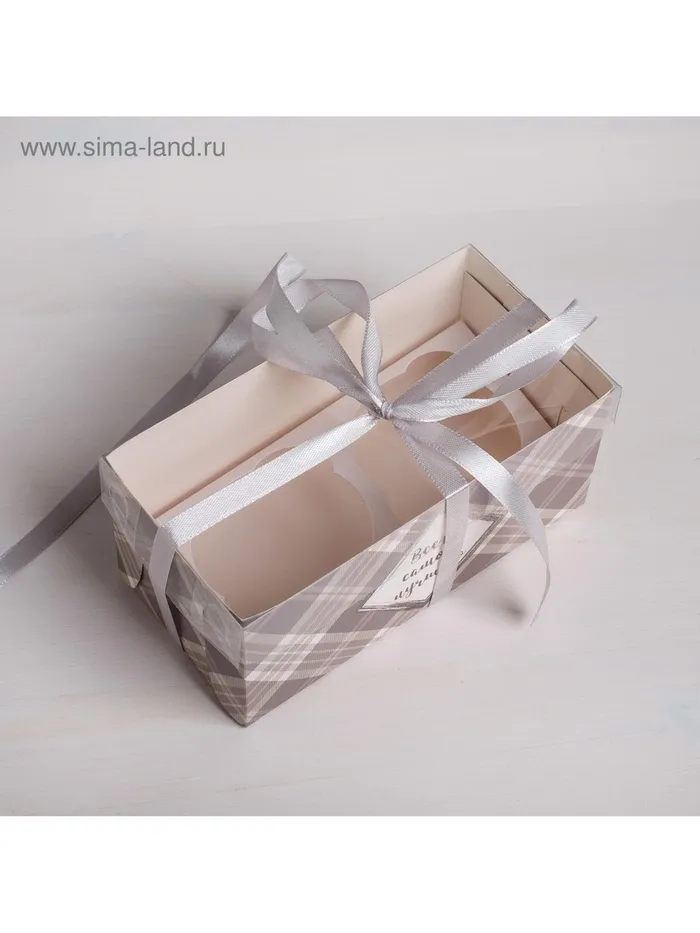 Коробка для капкейков, кондитерская упаковка, 2 ячейки «Всего самого лучшего», 16 х 8 х 7,5 см — Характеристики
