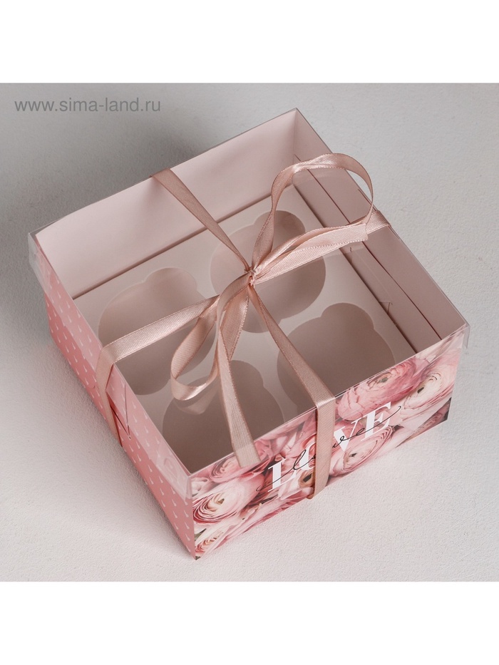 Коробка для капкейков, кондитерская упаковка, 4 ячейки «LOVE», 16 х 16 х 10 см — Характеристики