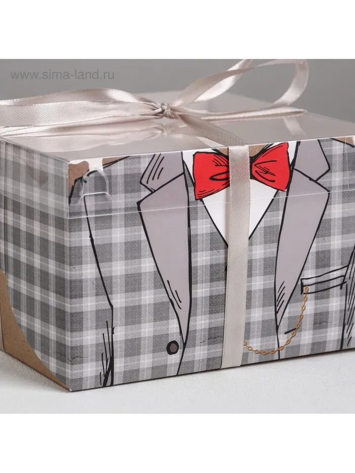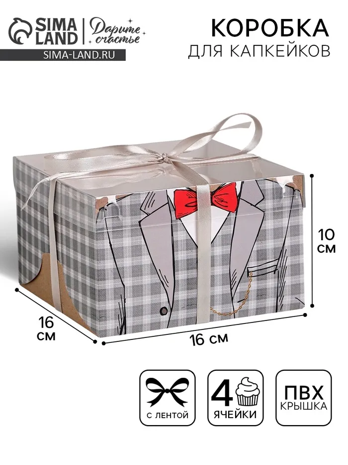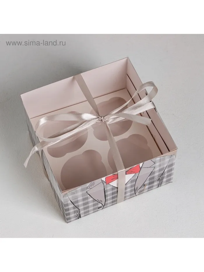 Коробка для капкейков, кондитерская упаковка, 4 ячейки «Настоящему мужчине», 16 х 16 х 10 см — Характеристики