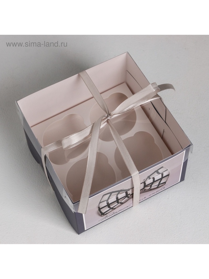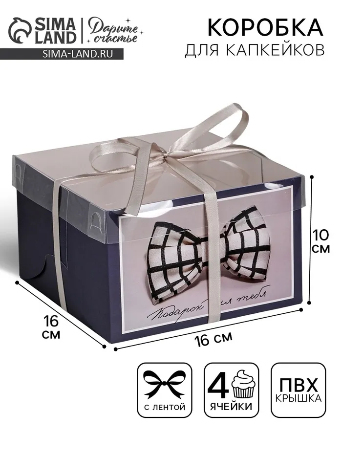 Коробка для капкейков, кондитерская упаковка, 4 ячейки «Подарок для тебя», 16 х 16 х 10 см — Характеристики