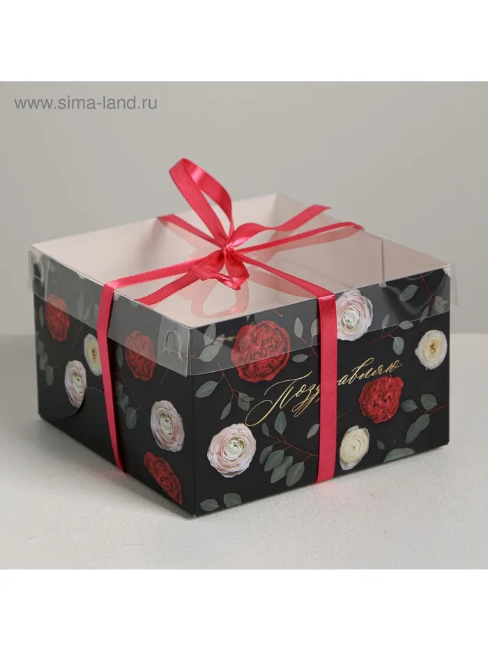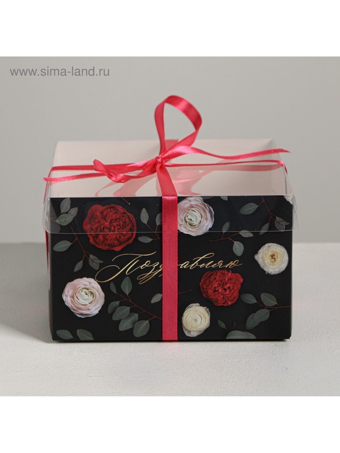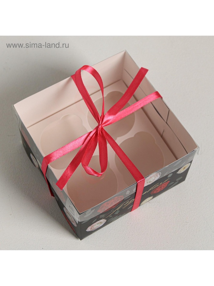 Коробка для капкейков, кондитерская упаковка, 4 ячейки «Поздравляю», 16 х 16 х 10 см — Характеристики