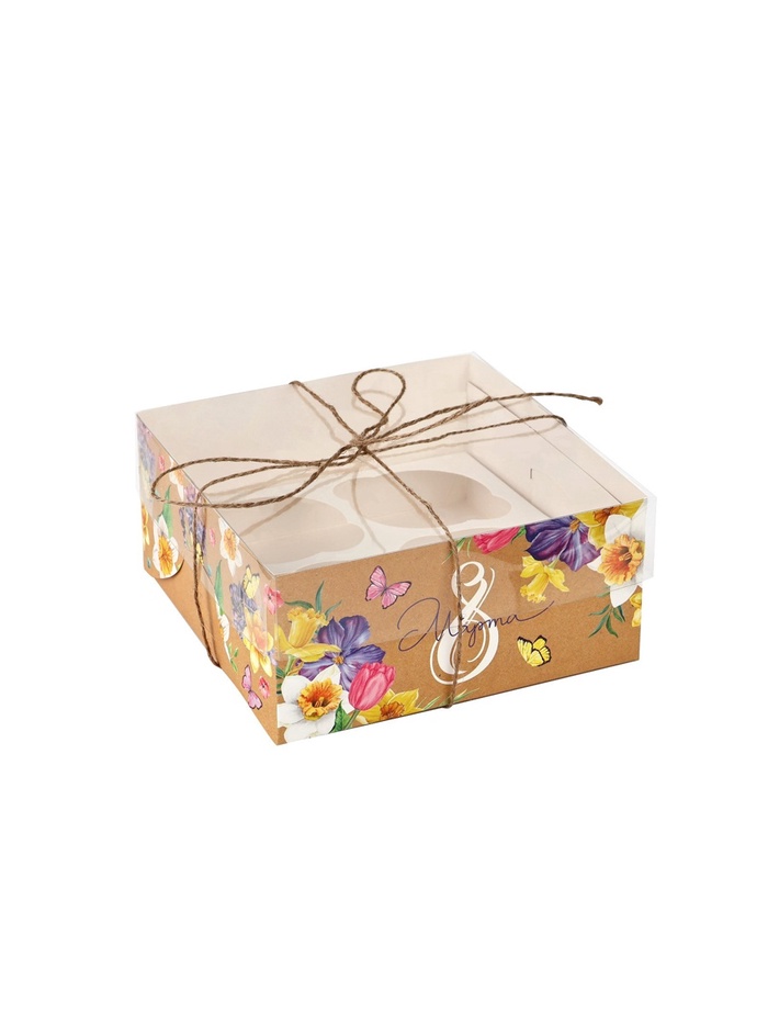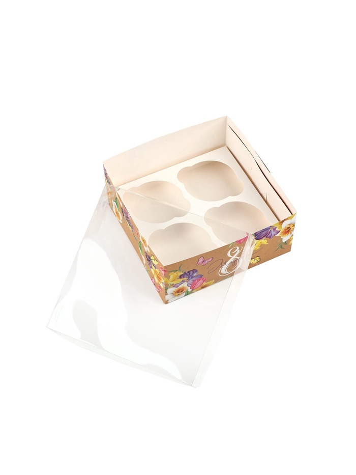Коробка для капкейков, кондитерская упаковка, 4 ячейки «С 8 марта», 16 х 16 х 7.5 см — Характеристики