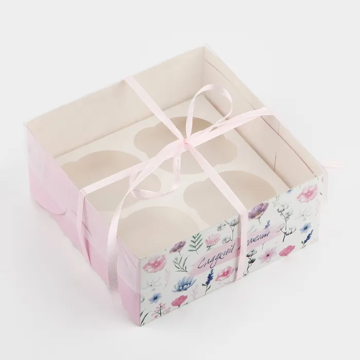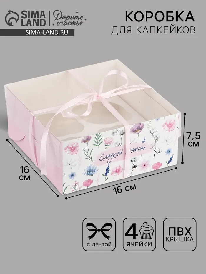 Коробка для капкейков, кондитерская упаковка, 4 ячейки «Сладкий момент», 16 х 16 х 7.5 см — Характеристики
