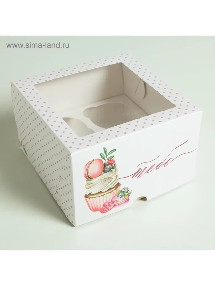Коробка для капкейков, кондитерская упаковка, 4 ячейки «Тебе» 16 х 16 х 10 см — Характеристики