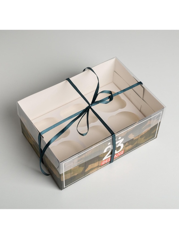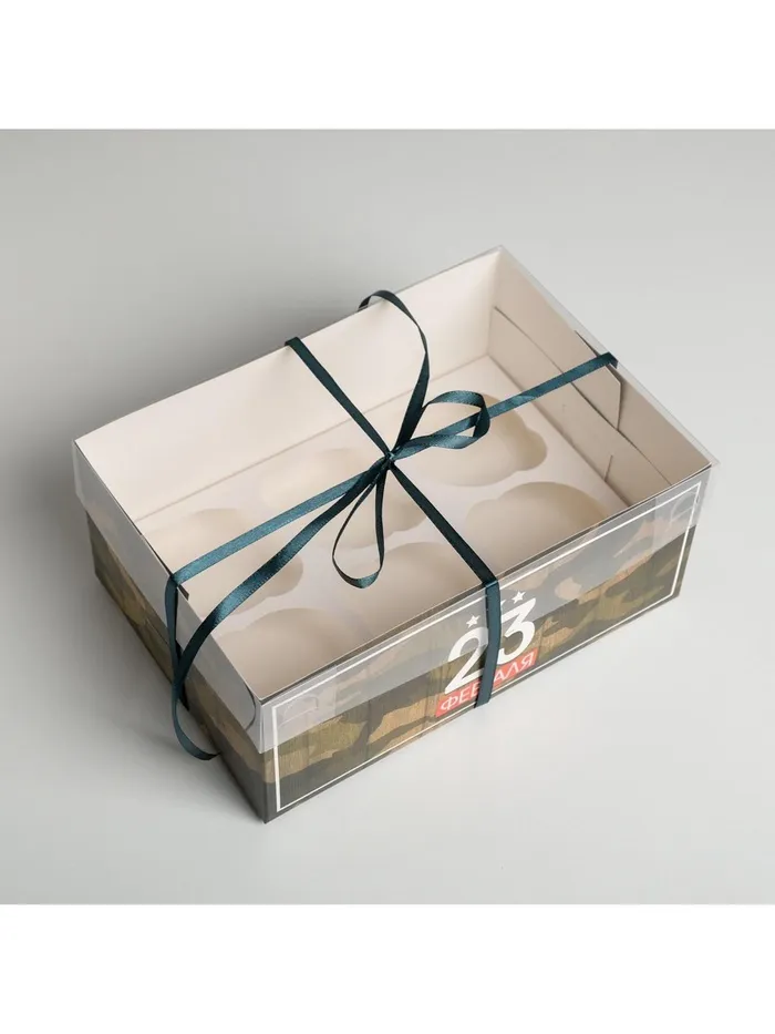 Коробка для капкейков, кондитерская упаковка, 6 ячеек «23 Февраля», 23 х 16 х 10 см — Характеристики
