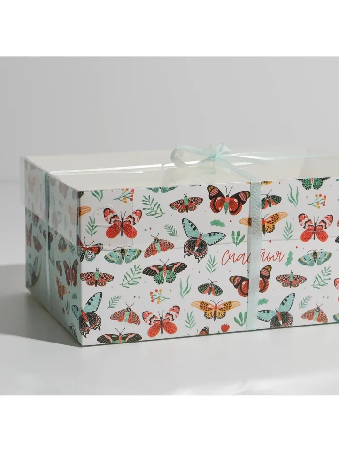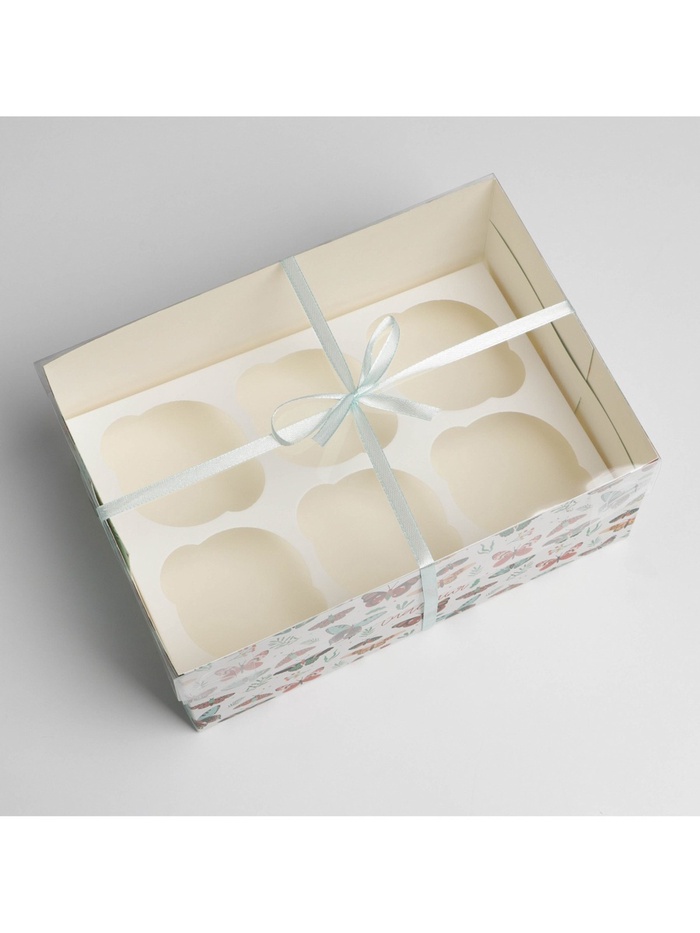 Коробка для капкейков, кондитерская упаковка, 6 ячеек «Бабочки», 23 х 16 х 10 см — Характеристики