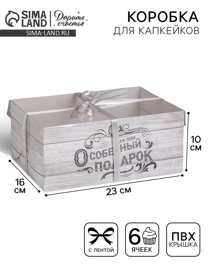 Коробка для капкейков, кондитерская упаковка, 6 ячеек «Для тебя особенный подарок», 23 х 16 х 10 см — Характеристики