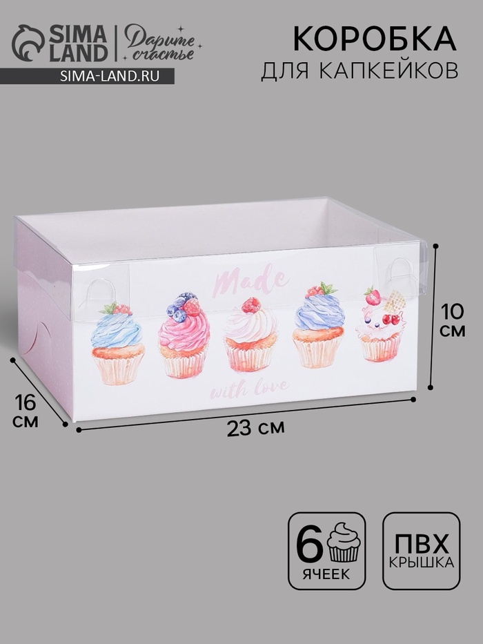 Коробка для капкейков, кондитерская упаковка, 6 ячеек «Made with love», 23 х 16 х 10 см — Характеристики