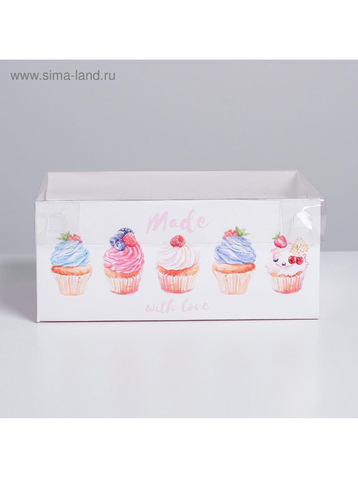 Коробка для капкейков, кондитерская упаковка, 6 ячеек «Made with love», 23 х 16 х 10 см — Характеристики