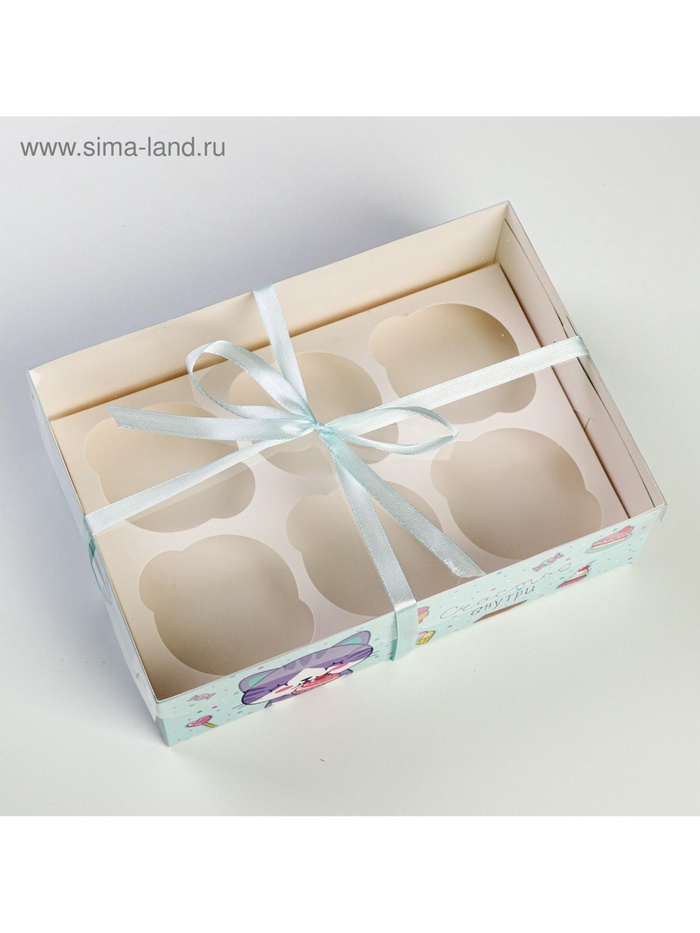 Коробка для капкейков, кондитерская упаковка, 6 ячеек «Счастье внутри», 23 х 16 х 7.5 см — Характеристики