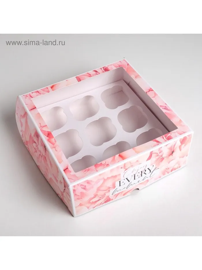 Коробка для капкейков, кондитерская упаковка, 9 ячеек «Enjoy every moment», 25 х 25 х 10 см — Характеристики