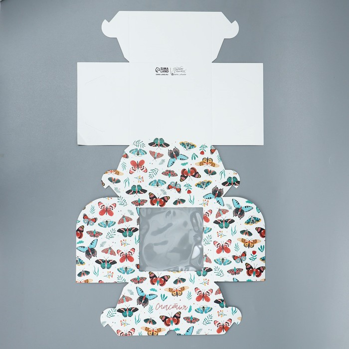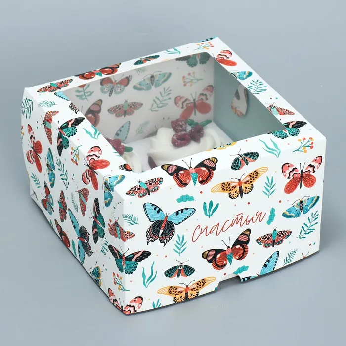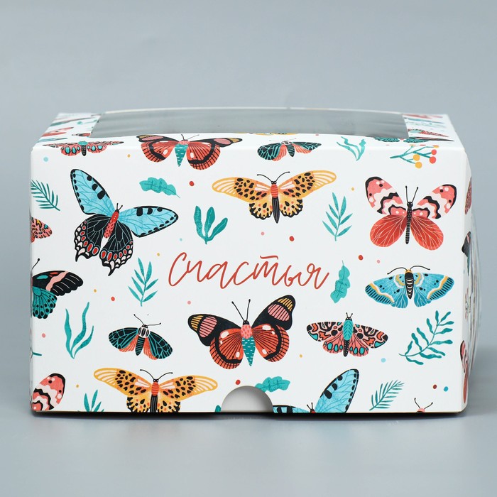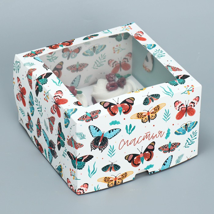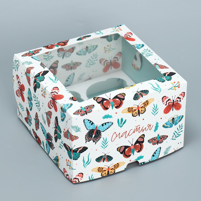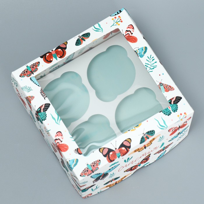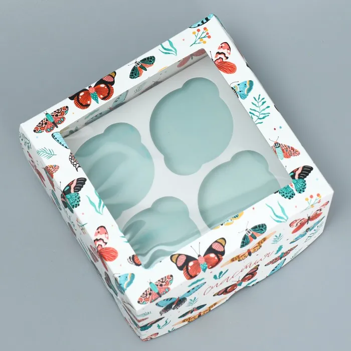 Коробка для капкейков, кондитерская упаковка двухсторонняя, 4 ячейки «Бабочки», 16 х 16 х 10 см — Характеристики