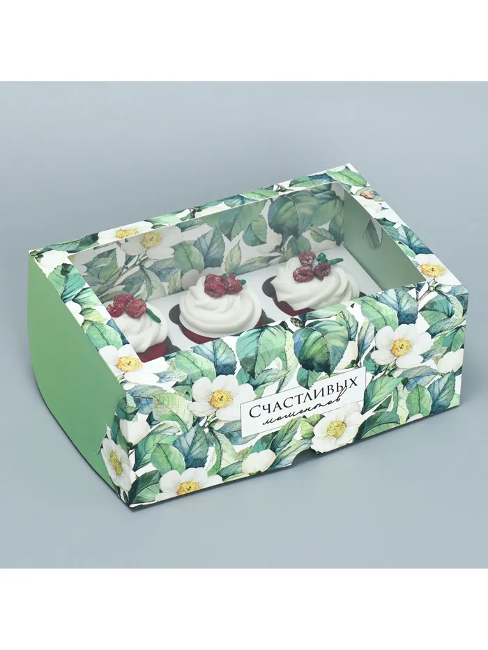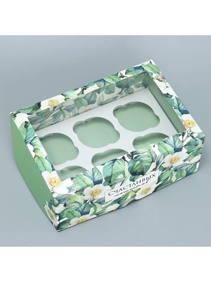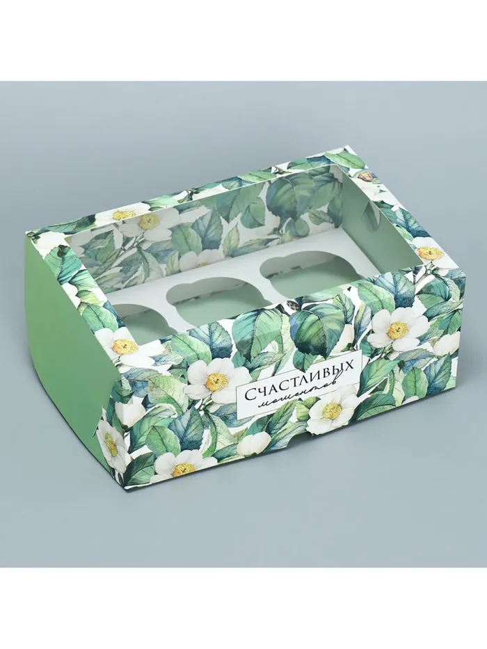 Коробка для капкейков, кондитерская упаковка двухсторонняя, 6 ячеек «Счастливых моментов», 25 х 17 х 10 см — Характеристики