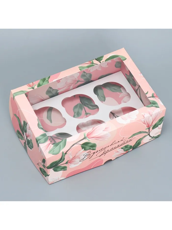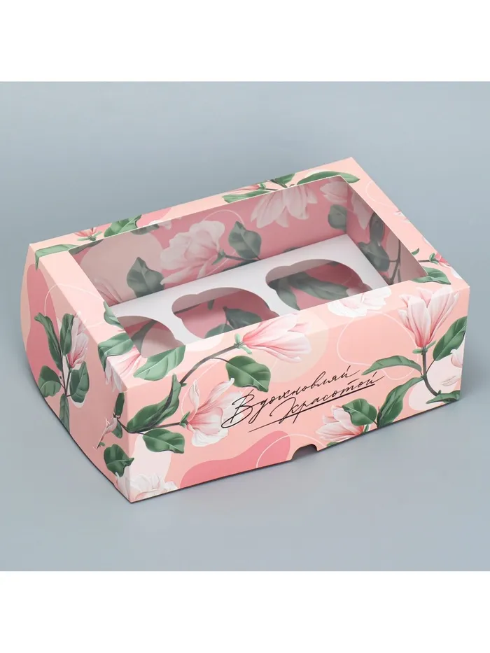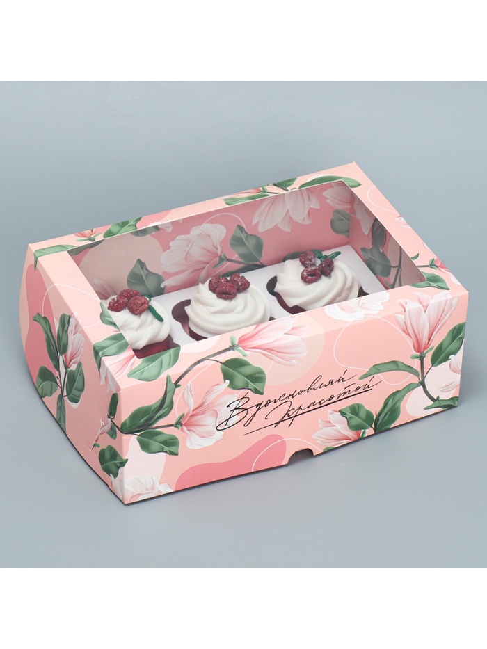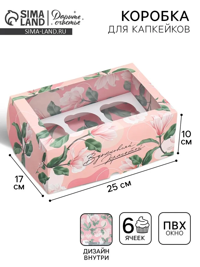 Коробка для капкейков, кондитерская упаковка двухсторонняя, 6 ячеек «Вдохновляй красотой», 25 х 17 х 10 см — Характеристики
