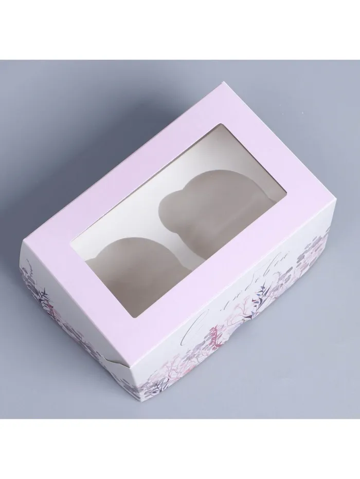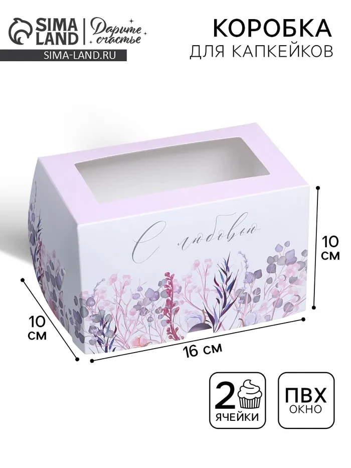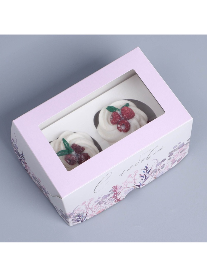 Коробка для капкейков, кондитерская упаковка с окном, 2 ячейки, «Венок», 16 х 10 х 10 см — Характеристики