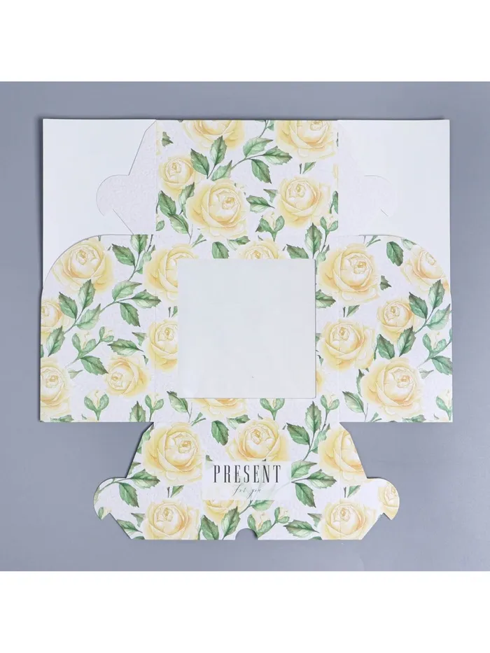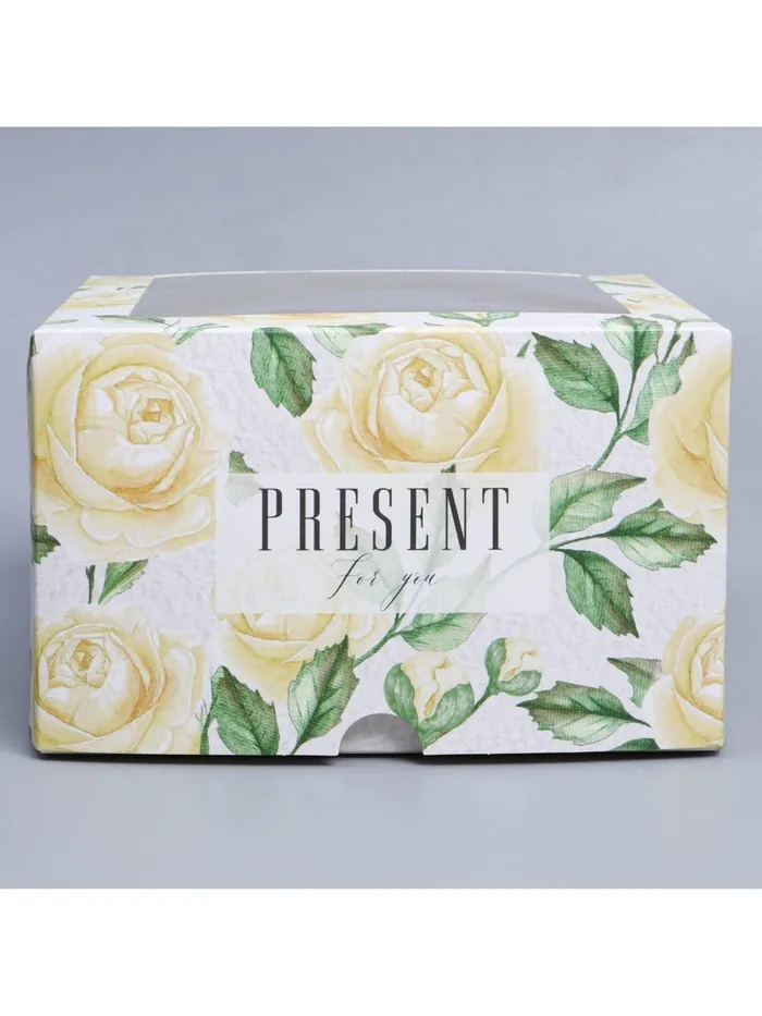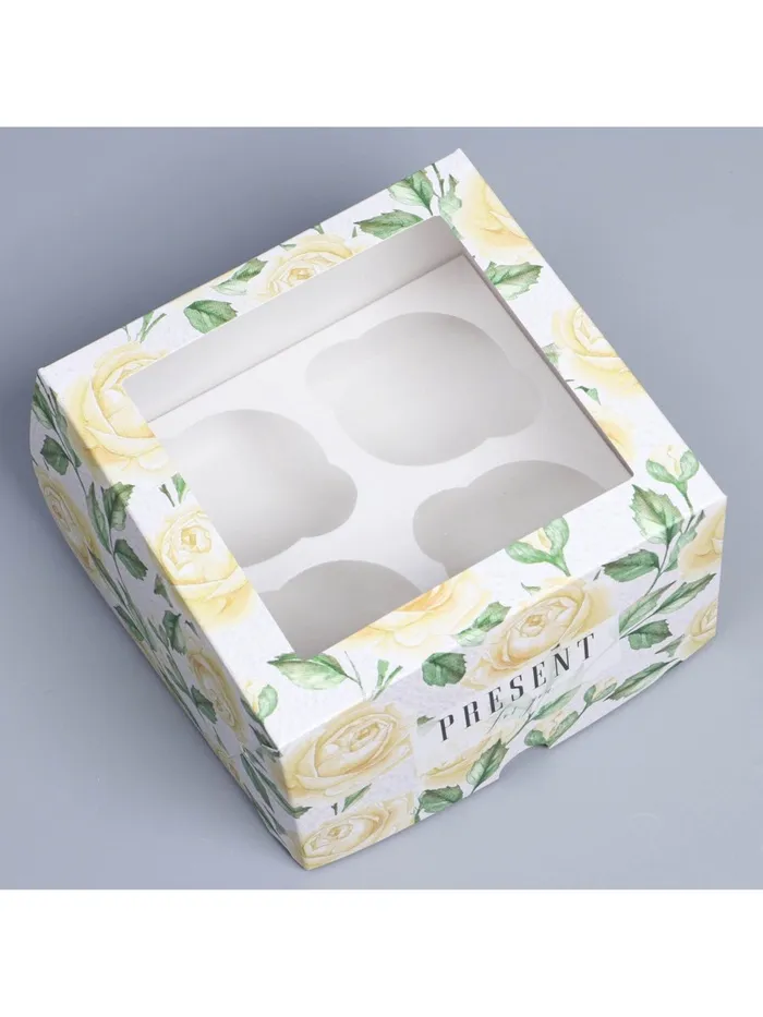 Коробка для капкейков, кондитерская упаковка с окном, 4 ячейки «Белые розы», 16 х 16 х 10 см — Характеристики
