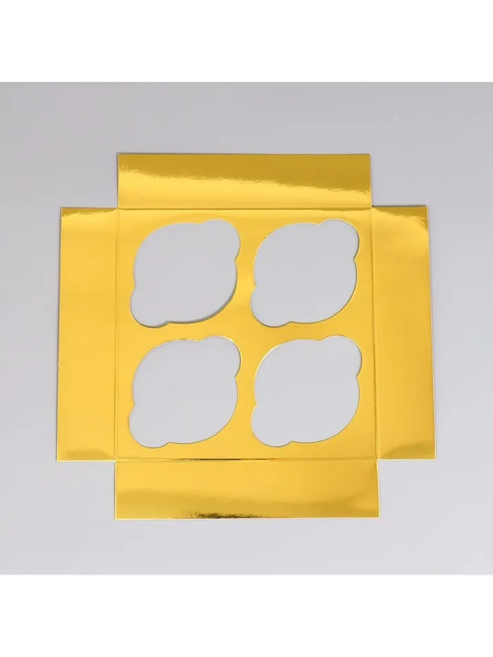 Коробка для капкейков, кондитерская упаковка с окном, 4 ячейки «Золотистая», 16 х 16 х 10 см — Характеристики