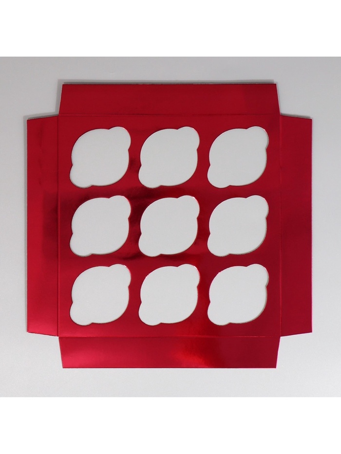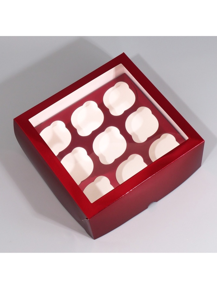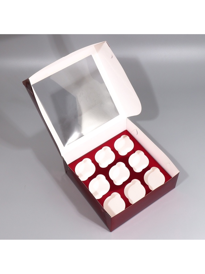 Коробка для капкейков, кондитерская упаковка с окном, 9 ячеек «Бордовая», 25 х 25 х 10 см — Характеристики