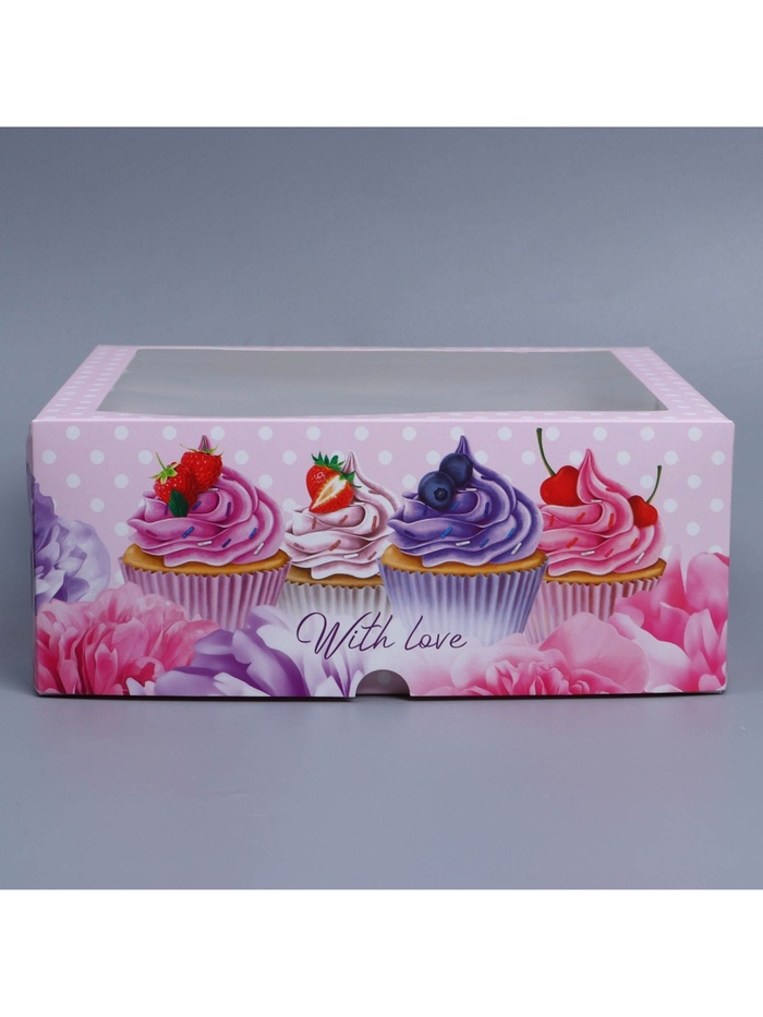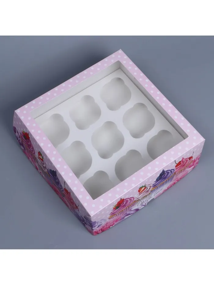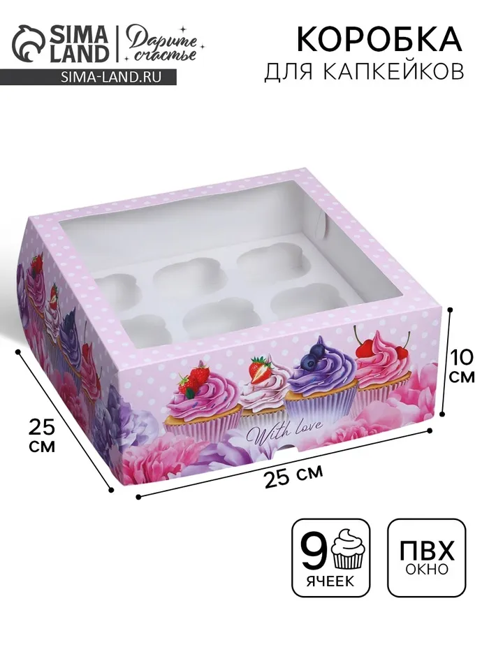 Коробка для капкейков, кондитерская упаковка с окном, 9 ячеек «Капкейки», 25 х 25 х 10 см — Характеристики