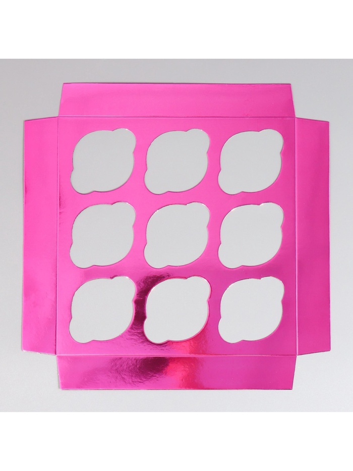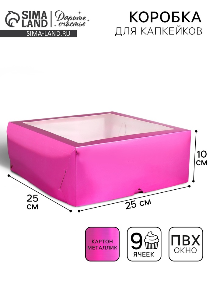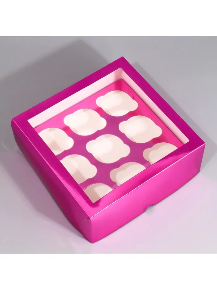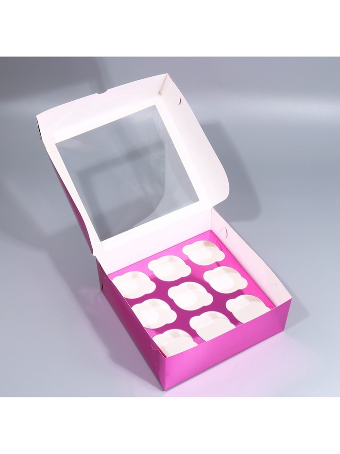 Коробка для капкейков, кондитерская упаковка с окном, 9 ячеек «Розовая», 25 х 25 х 10 см — Характеристики