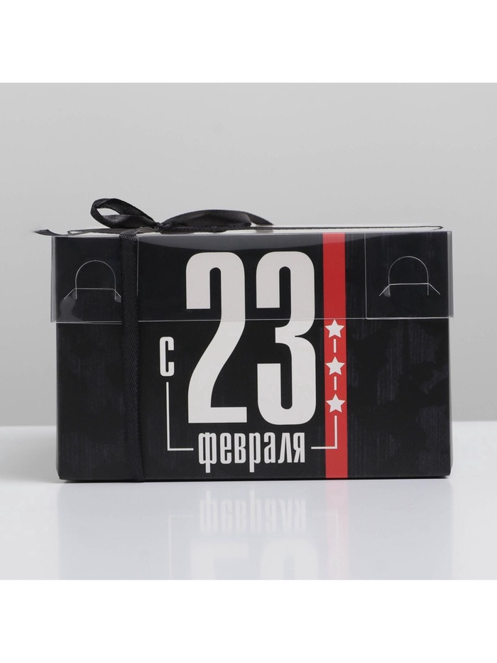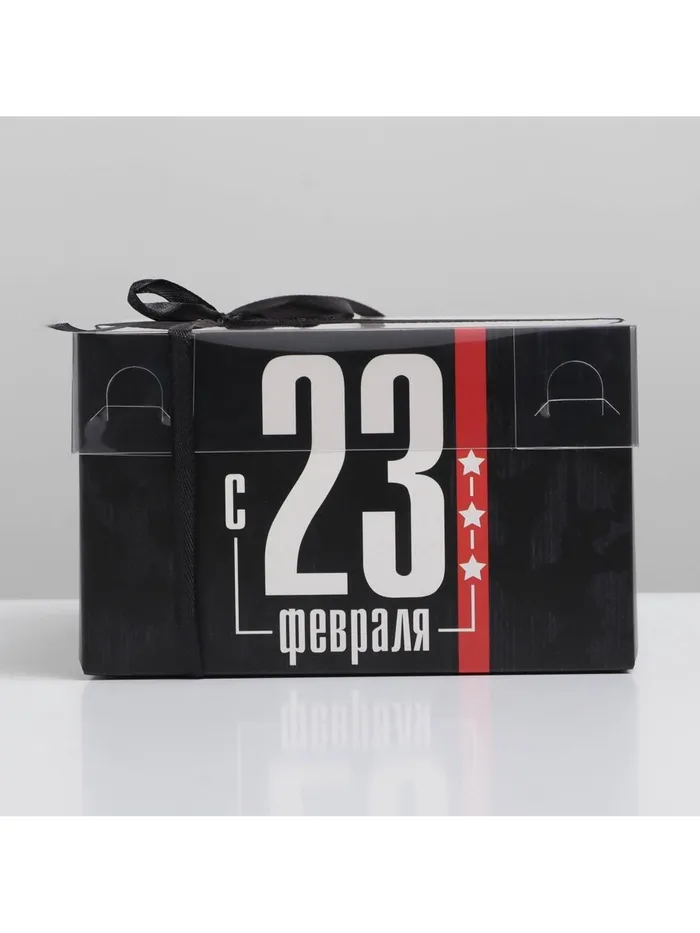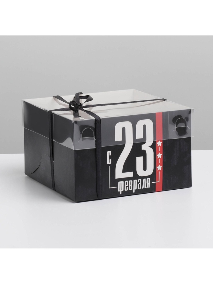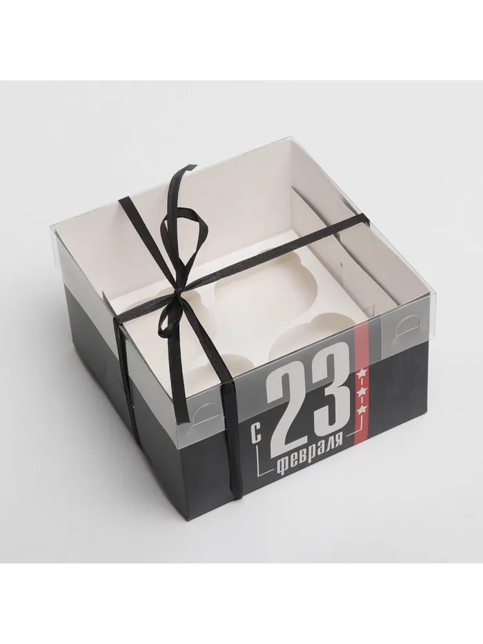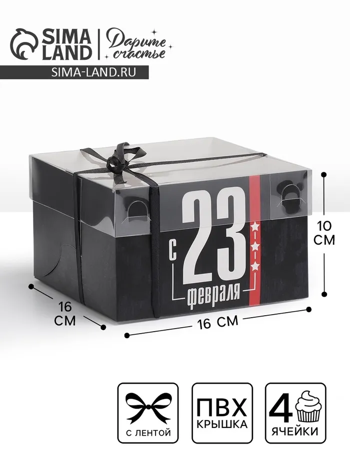 Коробка для капкейков, кондитерская упаковка с пластиковой крышкой, 4 ячейки «23 февраля», 16 х 16 х 10 см — Характеристики