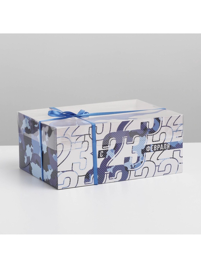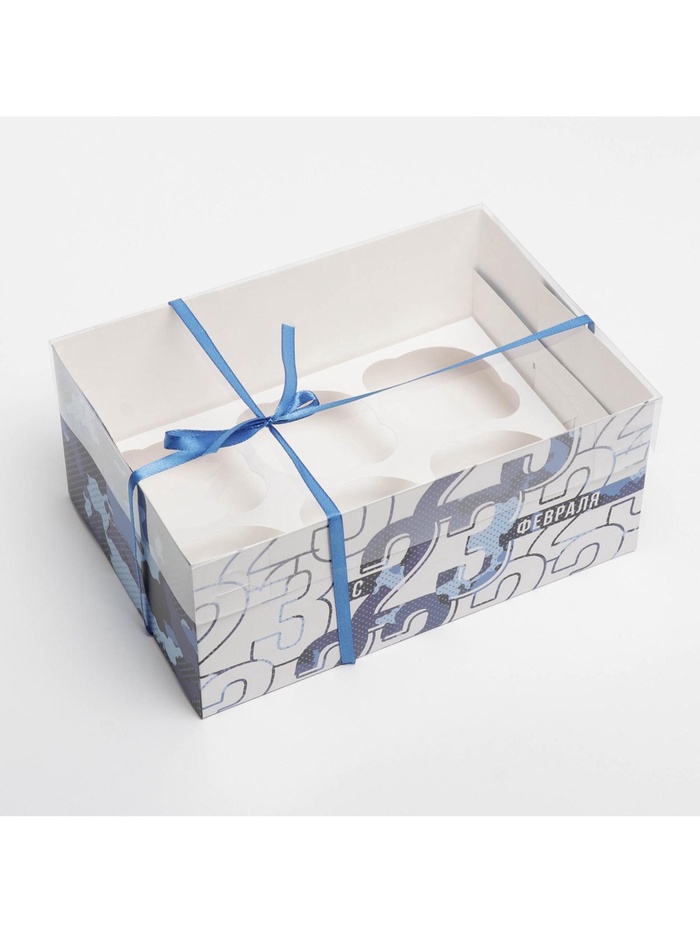Коробка для капкейков, кондитерская упаковка с пластиковой крышкой, 6 ячеек «23 февраля», 23 х 16 х 10 см — Характеристики