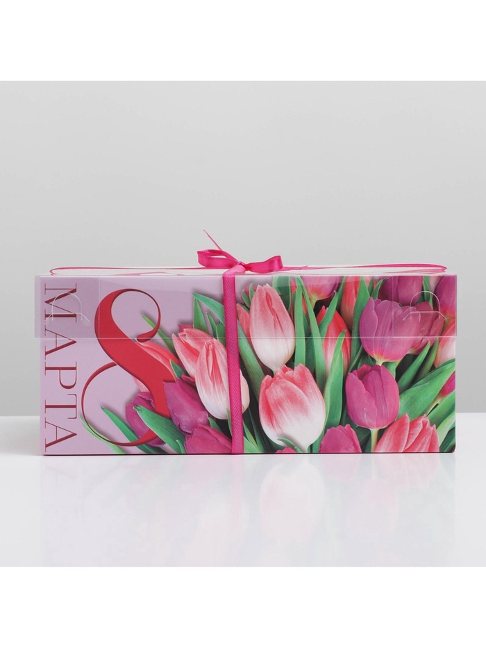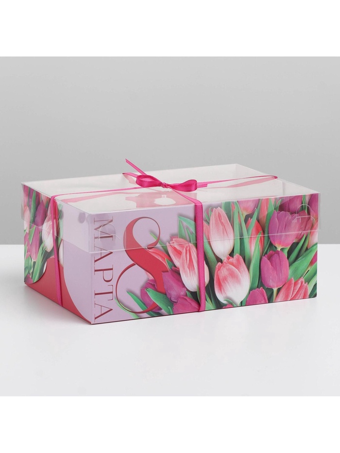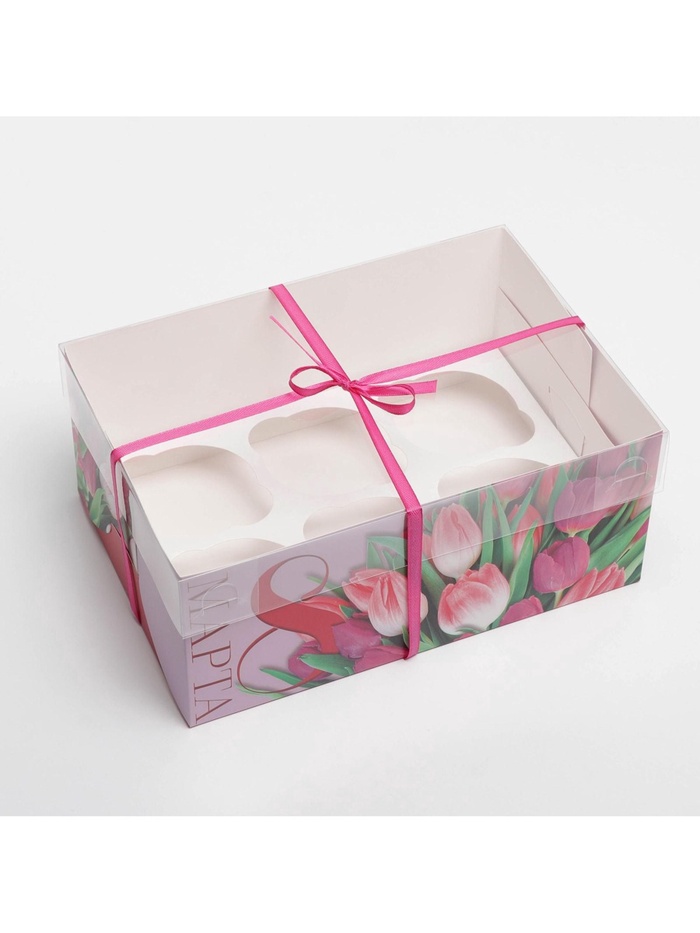 Коробка для капкейков, кондитерская упаковка с пластиковой крышкой, 6 ячеек «8 марта», 23 х 16 х 10 см — Характеристики