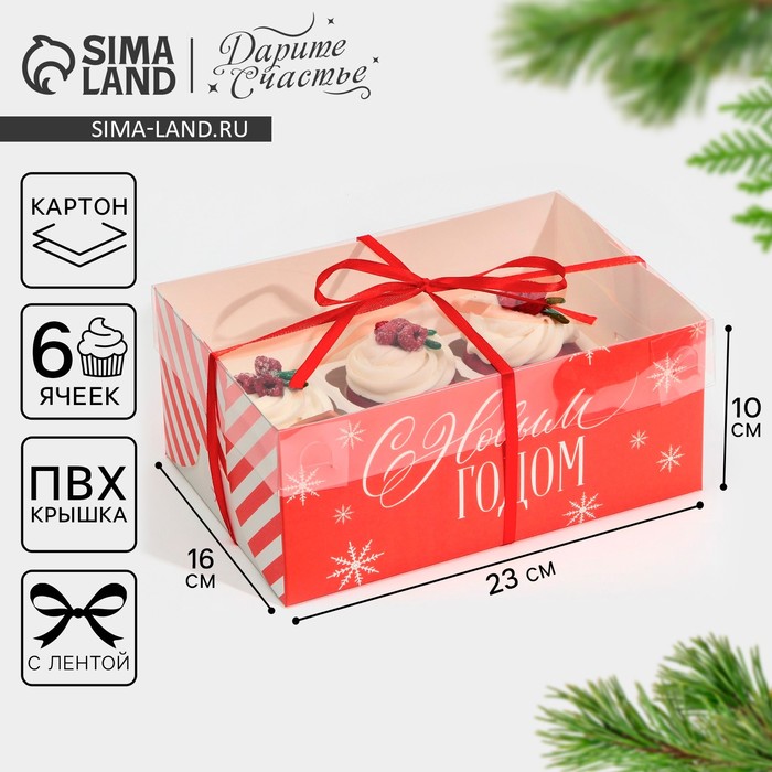 Коробка для капкейков новогодняя Happy New Year 17 х 25 х 10см — Характеристики
