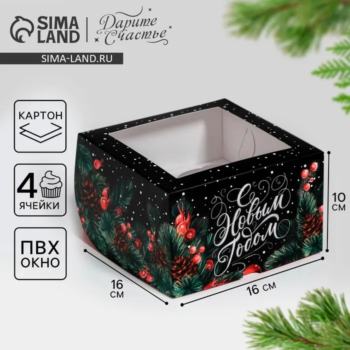 Коробка для капкейков «С Новым Годом!» 16 х 16 х 10 см — Характеристики