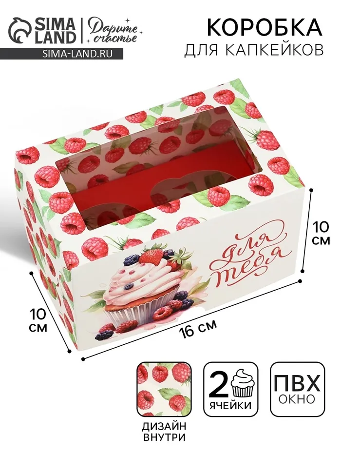 Коробка для капкейков складная с двусторонним нанесением «Для тебя», 16×10×10 см — Характеристики