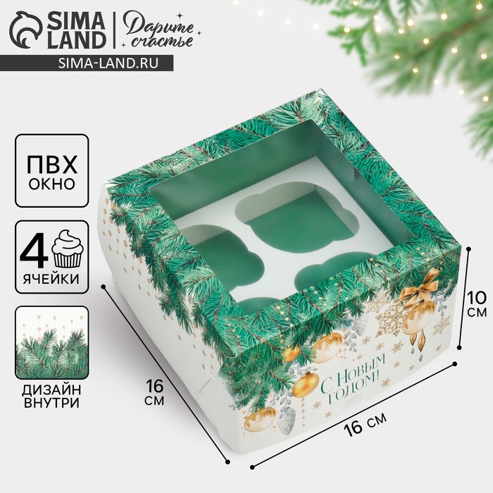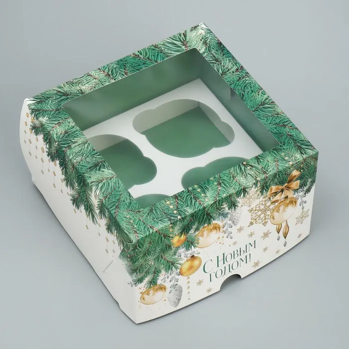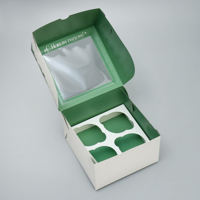 Коробка для капкейков складная с двусторонним нанесением «Новогоднее чудо», 16 х 16 х 10 см